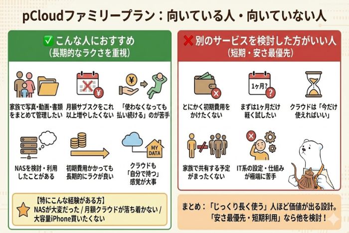 pCloudファミリープランは、じっくり使う人ほど価値が出る設計です。