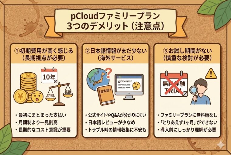 pCloudファミリープランは、誰にでもおすすめできるサービスではありません。