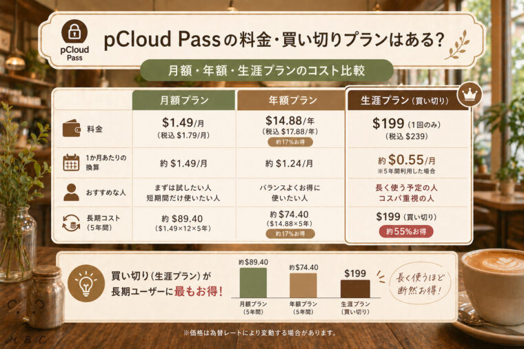 個人プランは月額もあるけど、ライフタイム(買い切り)プランもあるのがpCloud Passの大きな特徴です。