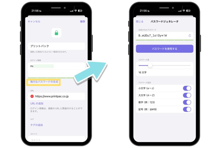 • パスワード生成が強力(英数記号混じり16〜32文字も一発)