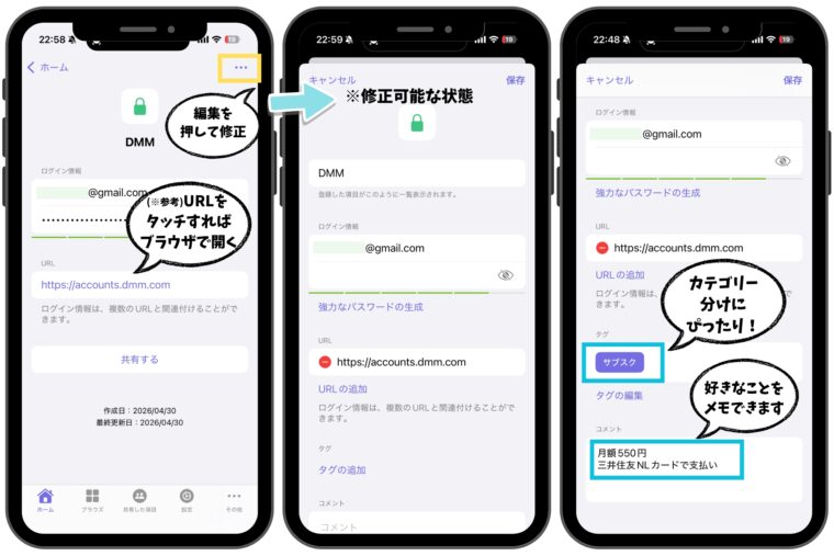 タグでカテゴリー分けもできて、メモもできちゃうのぉ〜!これが生涯ずっと無料で使えるのはうれし!