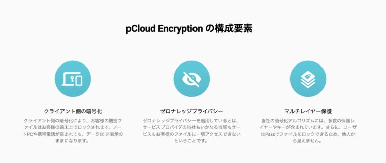 pCloudには、『pCloud Encryption』という有料オプションがあります。これを導入すると、『ゼロナレッジ(知識ゼロ)』という状態になります。
